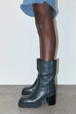 Formed of a vegetable tan lamb leather upper and completed with a vegetable tan cow leather lining and outsole, Abril runs to the mid-calf. She’s got a stacked leather curved block heel that stands in pleasing contrast to her robust square toe. Abril’s thick leather sole – finished with a sturdy leather welt – builds a subtle platform, creating the optical illusion of a heel much higher than it is. She’s finished with a memory foam insole, an inside zip, and a subtle elastic gusset – all paving the way for the perfect comfortable fit. Abril is not merely a boot. She’s an Icon. Heel Height 8.5 cm This style is true to size. We recommend selecting your standard European size. Designed in London | Handcrafted in Spain