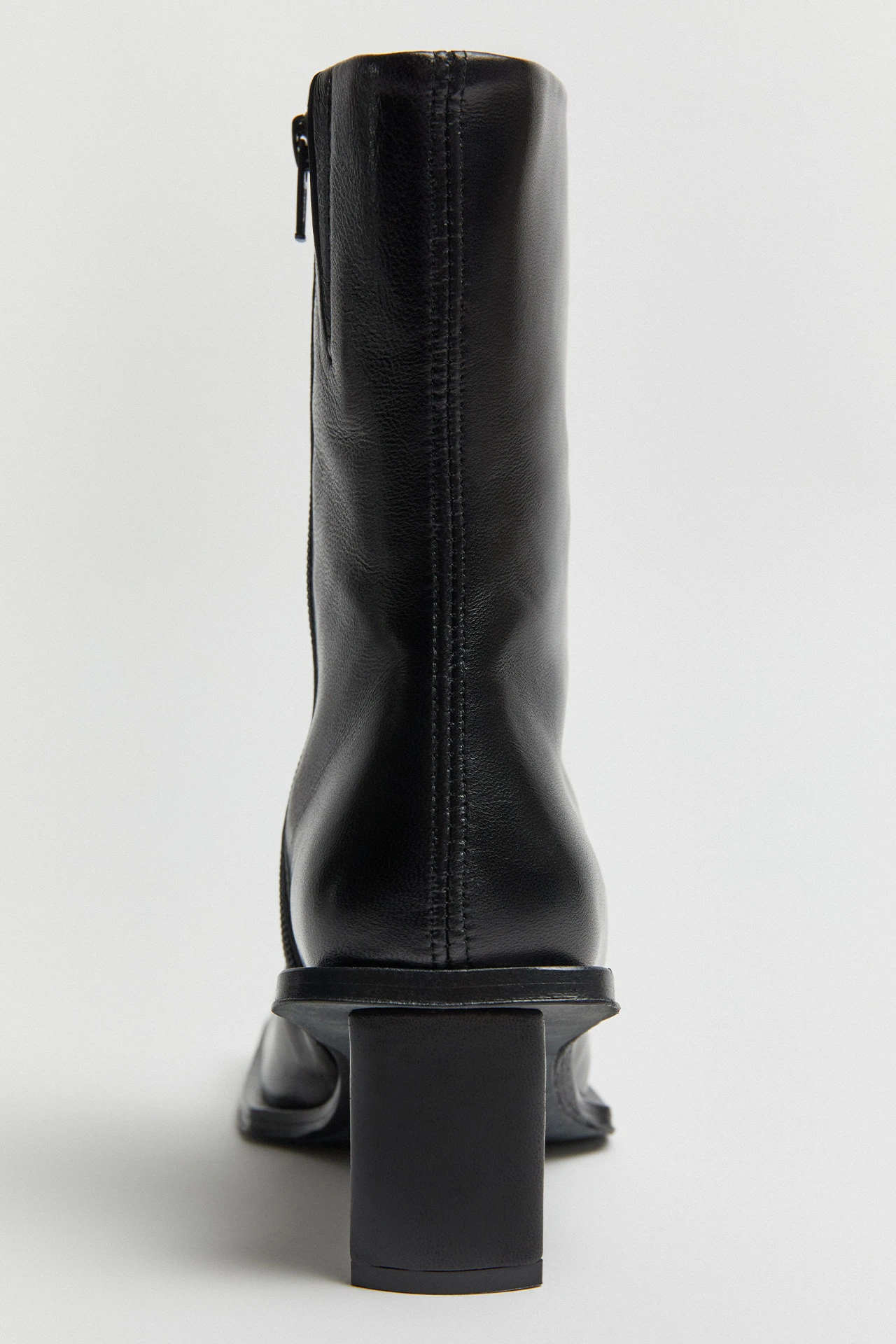 Pairing a statement square toe with an ultra-slimline curved heel, Brenda takes the fundamentals of opposites and runs with them. Her toe drops off at an oblique angle, plummeting in on itself to join the extended welt. Her soft Italian lamb leather upper runs just above the ankle, featuring a full-length inner zip and discreet elastic gusset for the perfect fit. As with all Icons, Brenda is finished with memory foam insoles and vegetable tan cow leather lining for enhanced comfort, plus a rubber heel cap and rubber-invected toe on her vegetable tan cow leather sole for durability.