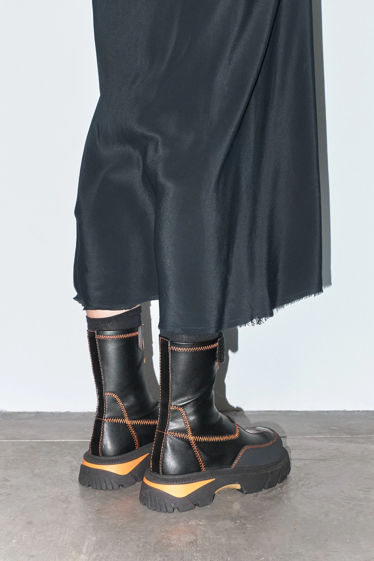 Danica is ready for anything. She’s a black ankle boot featuring a rubberized orange centre zip, velcro strap, textured rubber panels, and contrasting zig-zag orange stitching all over. And to top it all off, she’s got a heavy duty rubber tread sole for supreme comfort through thick and thin.