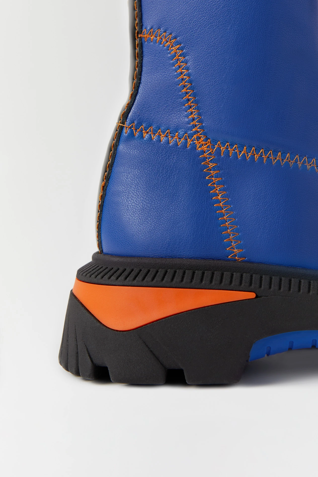 Danica is ready for anything. She’s a blue ankle boot featuring a rubberized black centre zip, velcro strap, textured rubber panels, and contrasting zig-zag orange stitching all over. And to top it all off, she’s got a heavy duty rubber tread sole for supreme comfort through thick and thin.
