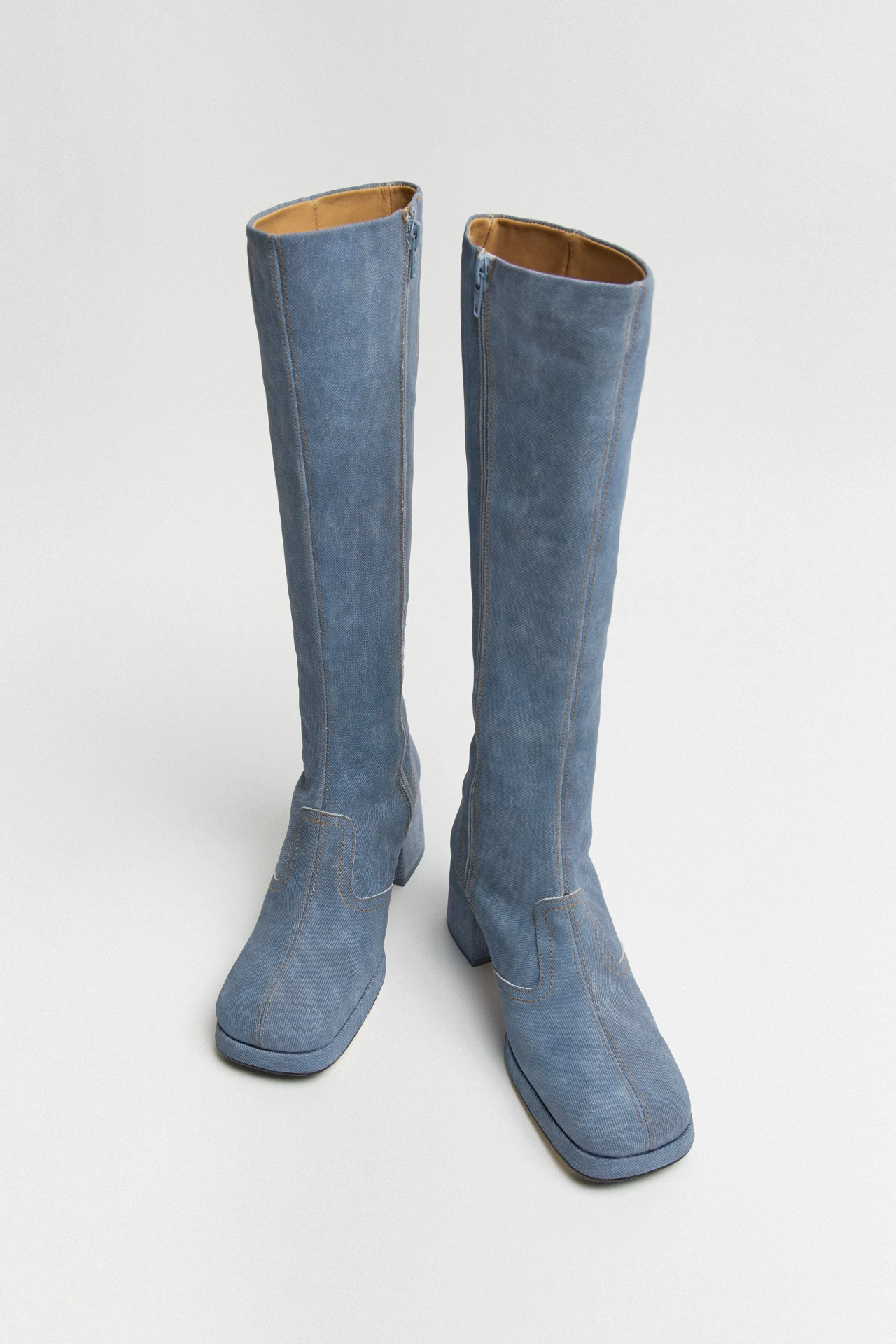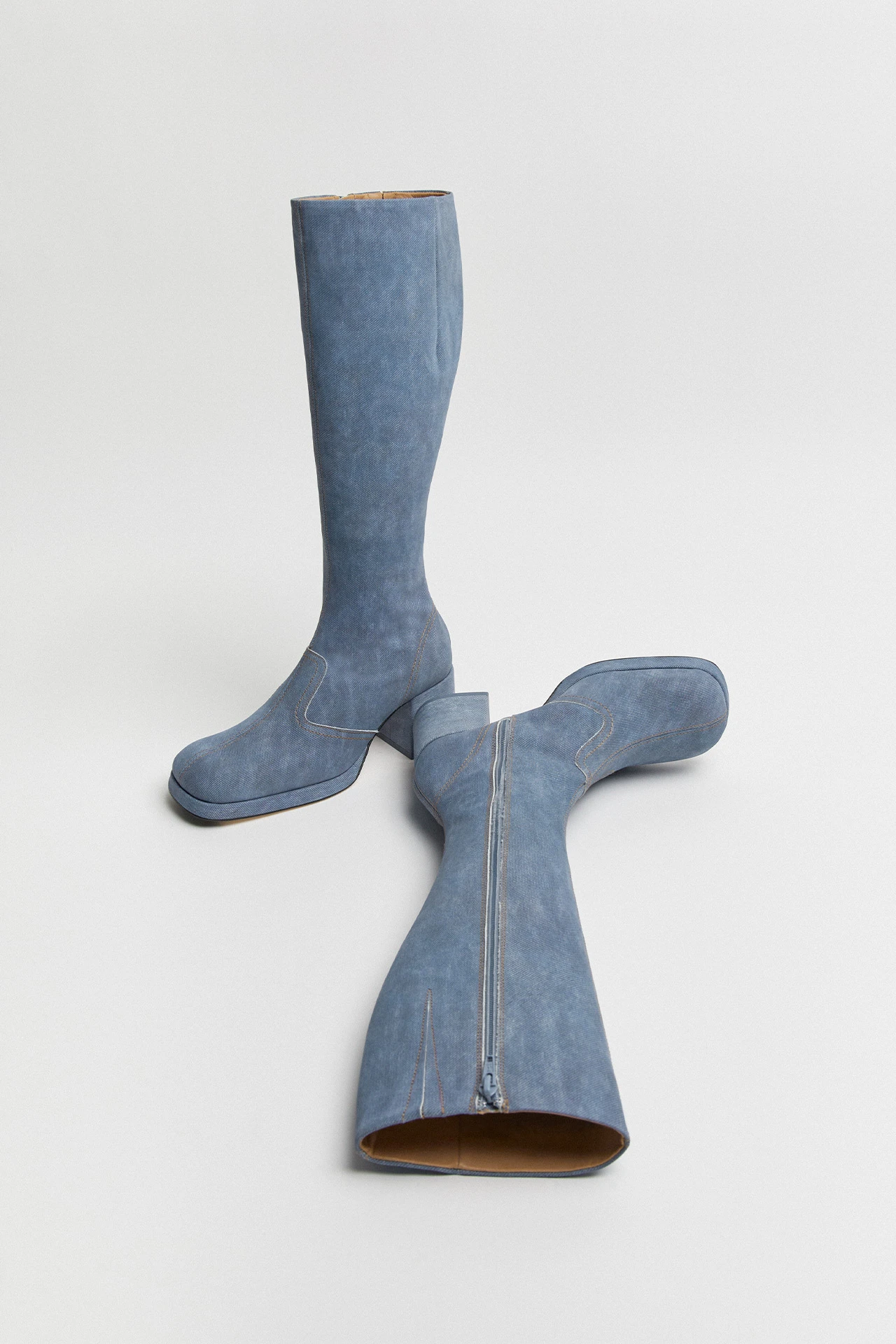We think of Donna as Cass’ taller, bolshier older sister. Her paneled upper is formed of soft blue denim and joined with double stitching, reaching right up the calf for a tall just-below-the-knee finish. We’d categorize Donna’s heel as high, but her platform sole counters this, serving up a lower-heel feel to keep you strutting til dawn.