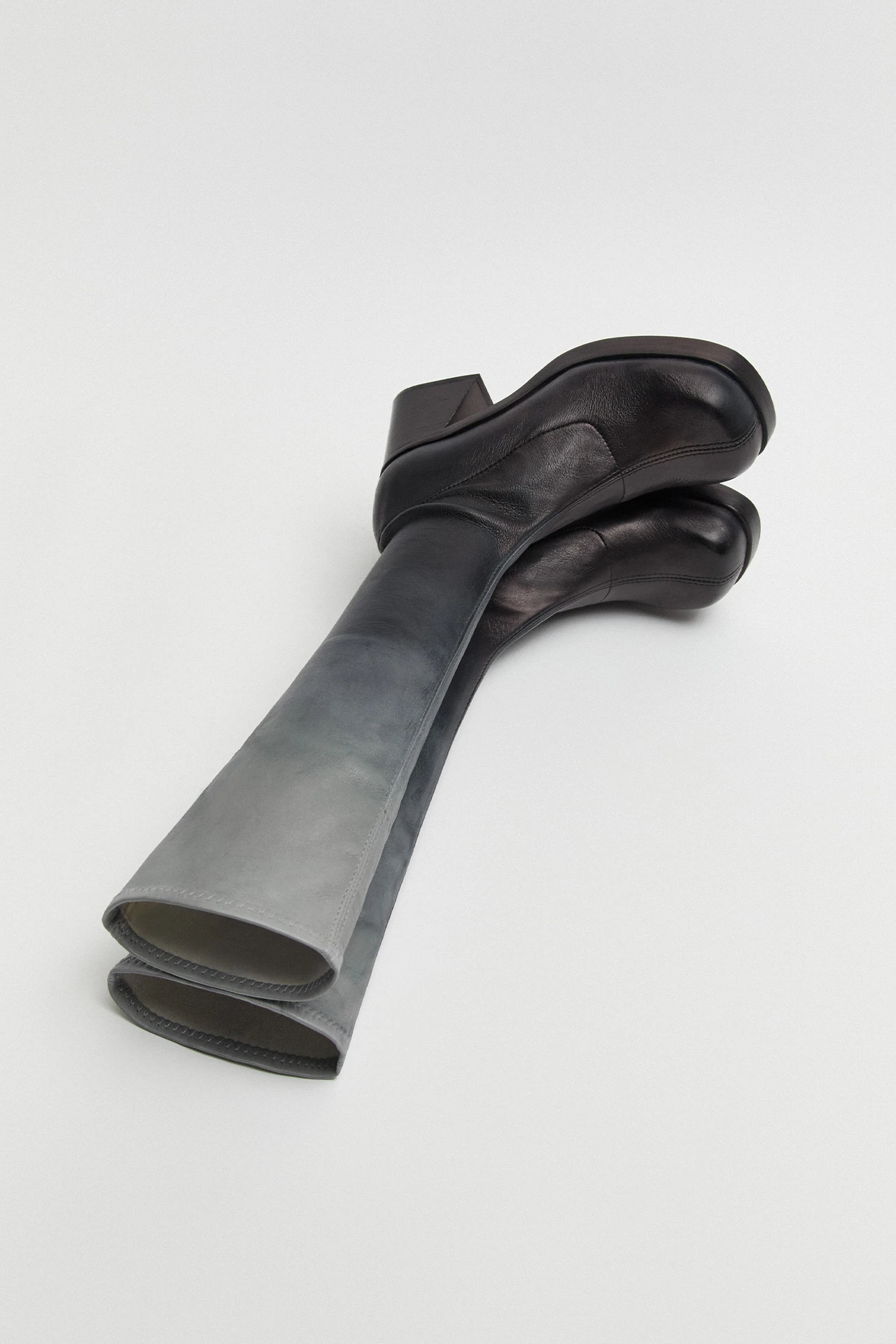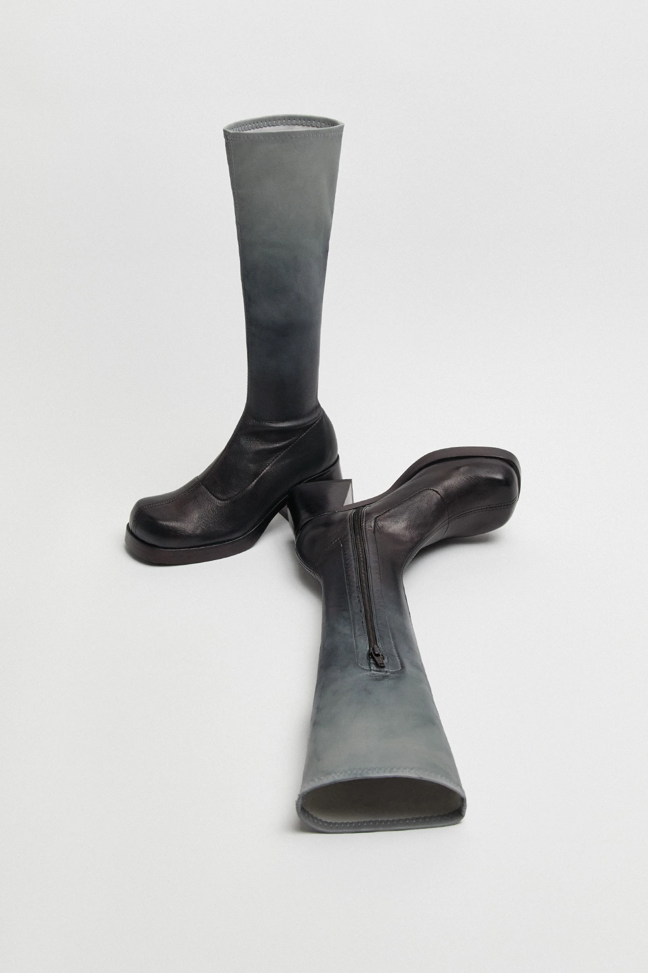 With her round extra character toe and slanted stacked leather heel and platform, Hedy is Elke’s iconic taller sister. With a grey gradient leather upper complete with a discreet inside zip, she serves a snug, flattering knee-high fit for all shapes and sizes. Finished with memory foam insoles for enhanced comfort as well as our signature cow leather lining and outsole with rubber heel cap and invected toe, Hedy is an everyday Icon.