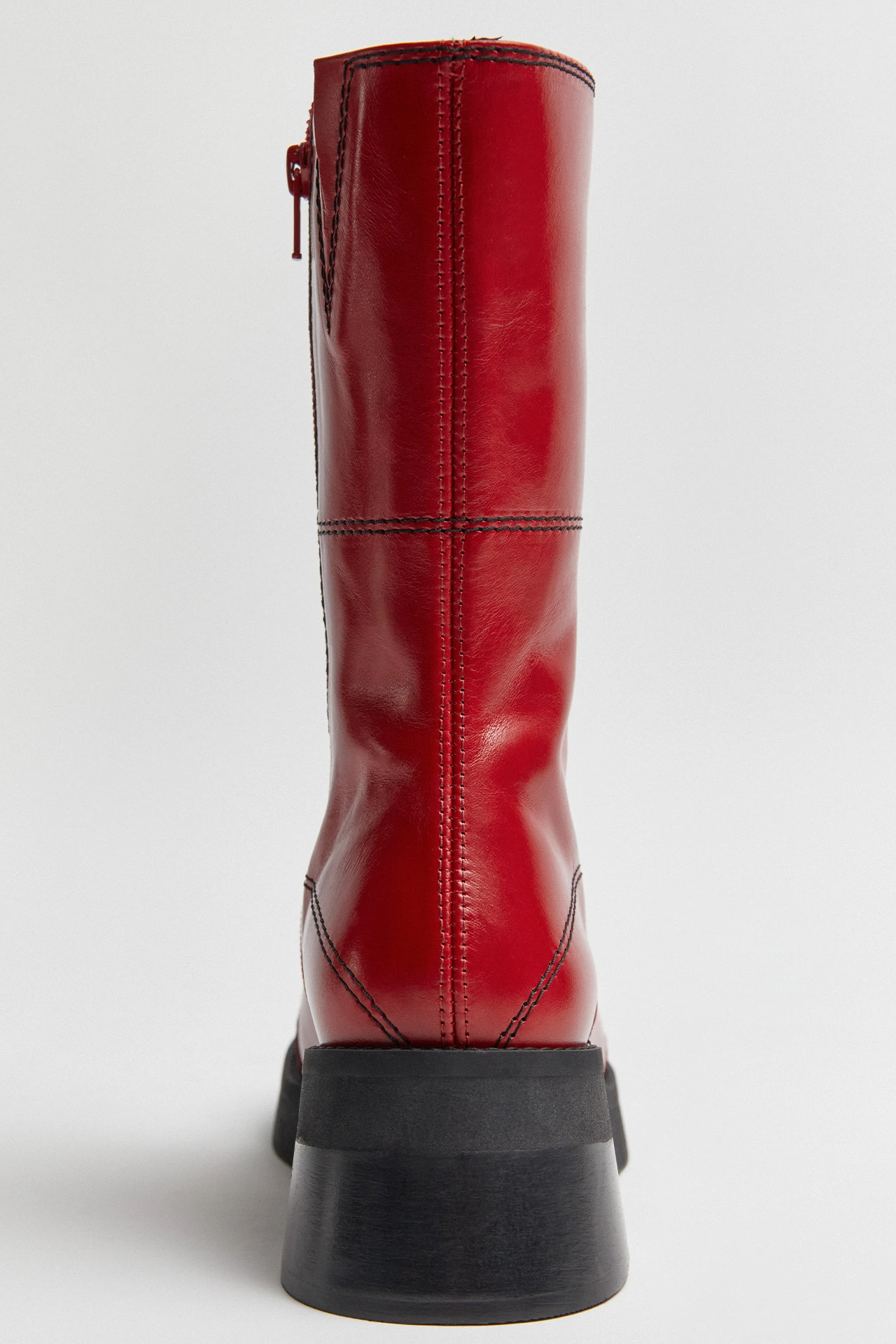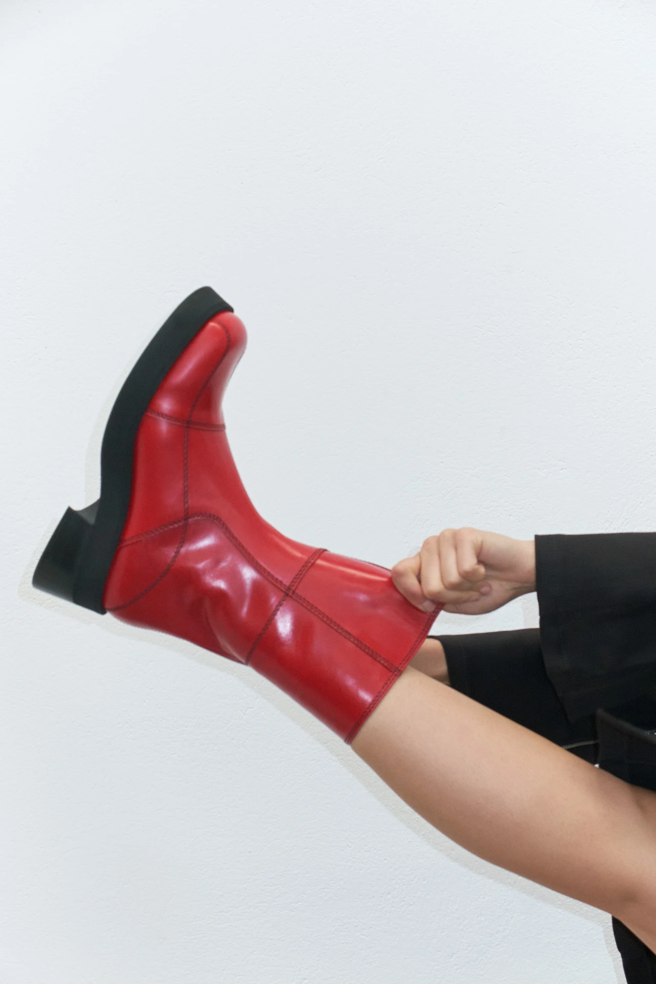 Crafted from a series of red leather panels and joined with contrast black stitching atop a robust rubber sole with a low heel, Heya is the not-your-everyday boot you can actually wear every day. She’s even got an inner zip and subtle elastic gusset to really optimize your fit.