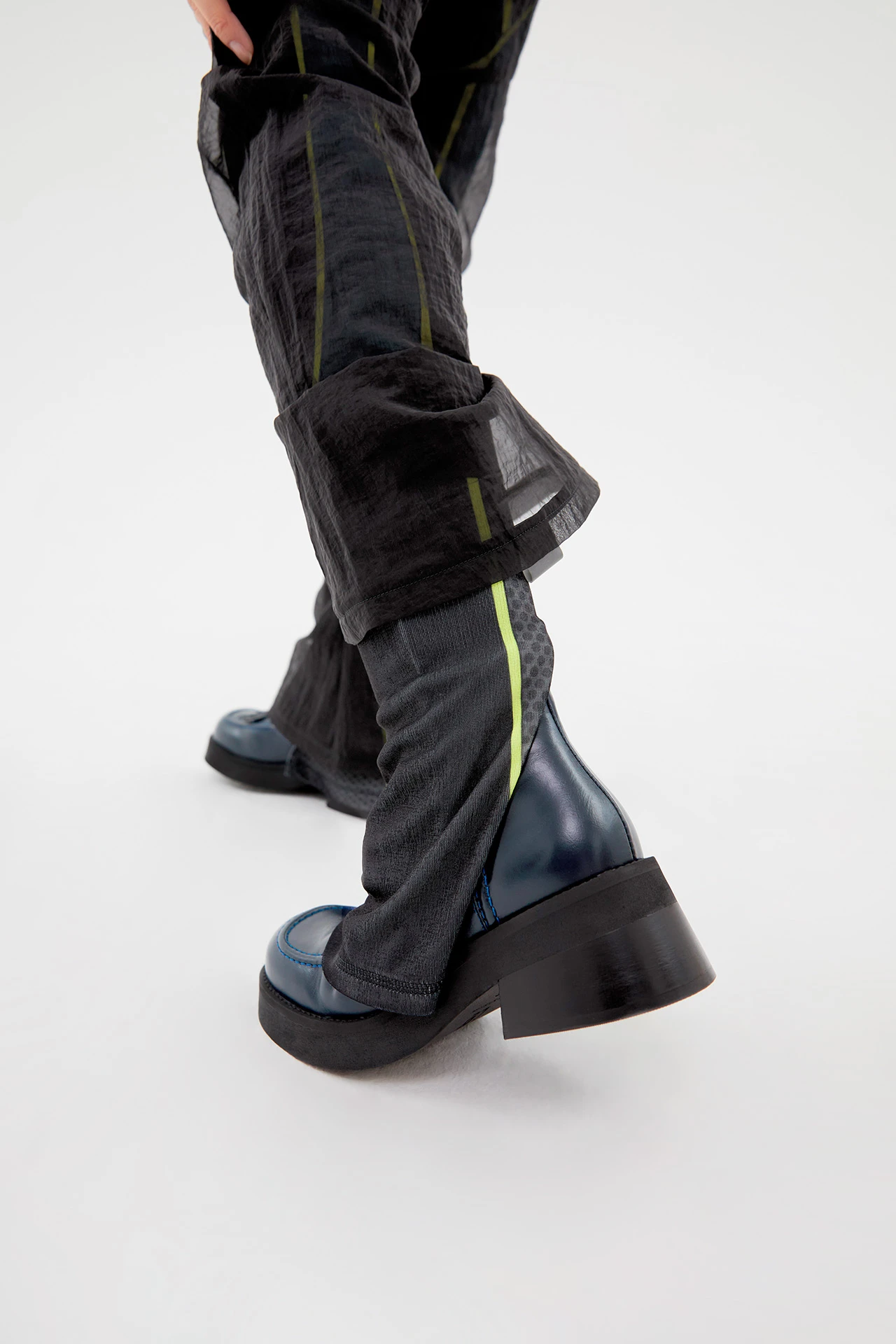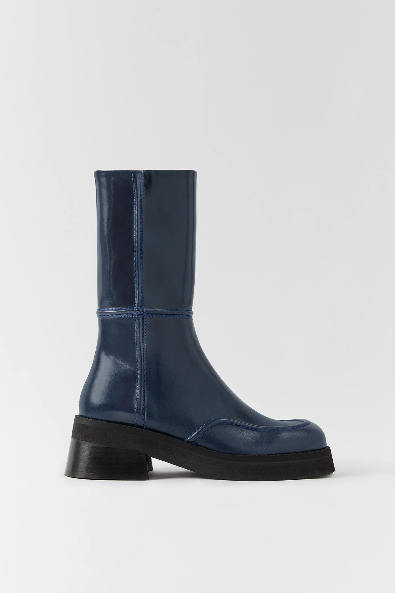 A classic mid-calf boot in blue leather. Inne is inspired by motor-racing boots, but you donโt need a license to wear it.
