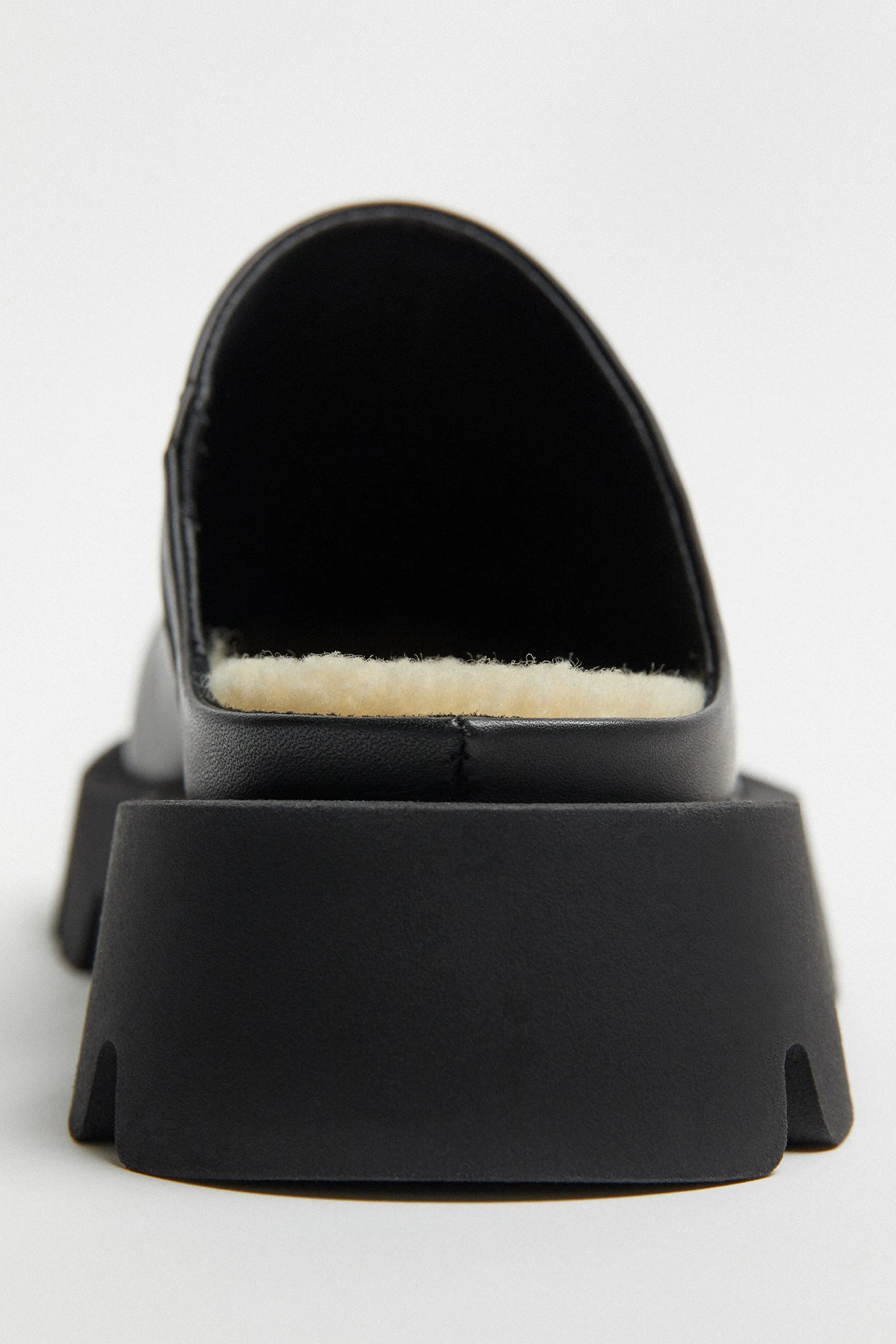 A classic mule with bite. Lohana’s easy, slip-on upper is crafted in cow leather with a curved front that hides stitching in a made-for-you finish. Tucked inside, a layer of cream borg fabric hugs the sole of the foot with every step, contrasting with the tough exterior of her serrated platform. Heel Height: 6cm