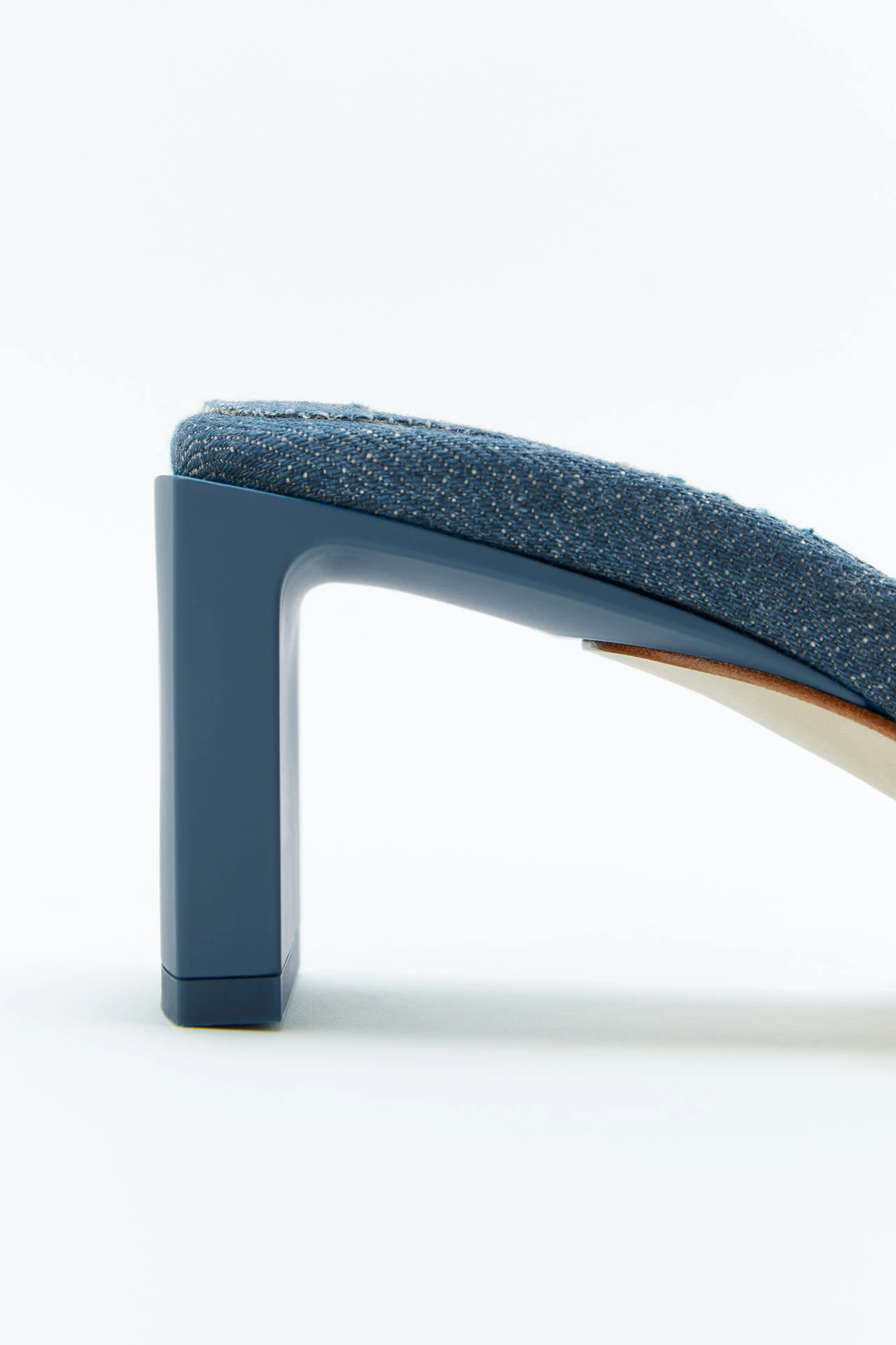 Marguerite toys with the power of opposites, contrasting her statement extra round toe with an ultra flat square back mid heel. Her extra memory foam insoles are elongated on the sides and her upper hand stitched to the insoles for better comfort. Reimagining her Icon status for SS22, she’s built from Japanese Kuroki denim upper, joined with frayed edging and contrast stitching. Marguerite is finished with memory foam insoles and vegetable tan cow leather lining for enhanced comfort, plus a rubber heel cap and rubber-invected toe on her vegetable tan cow leather sole for robust durability. Heel Height 6cm This style is true to size. We recommend selecting your standard European size. Designed in London | Handcrafted in Spain