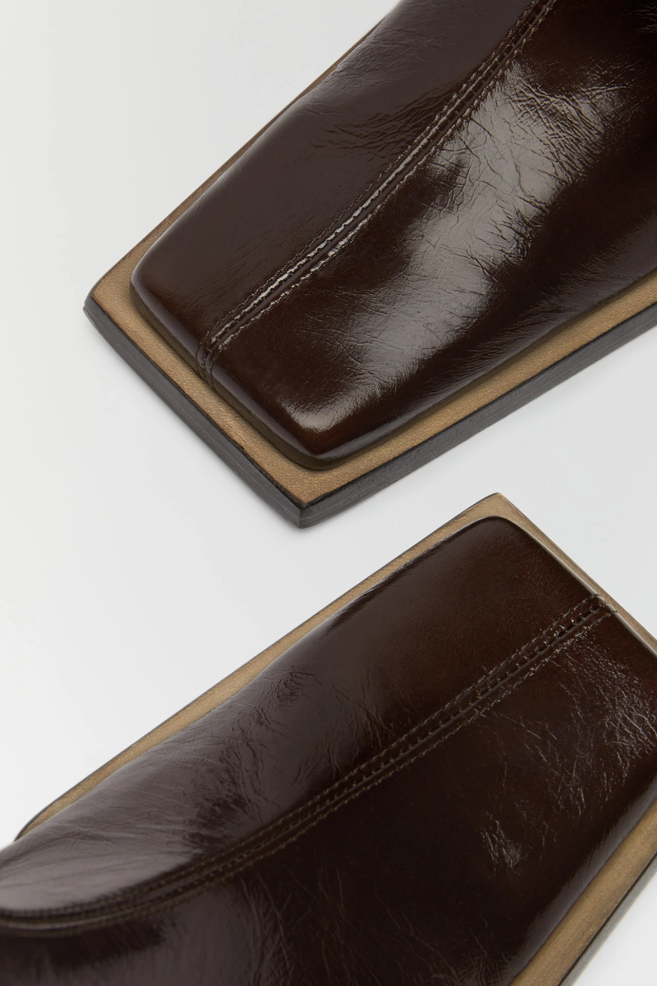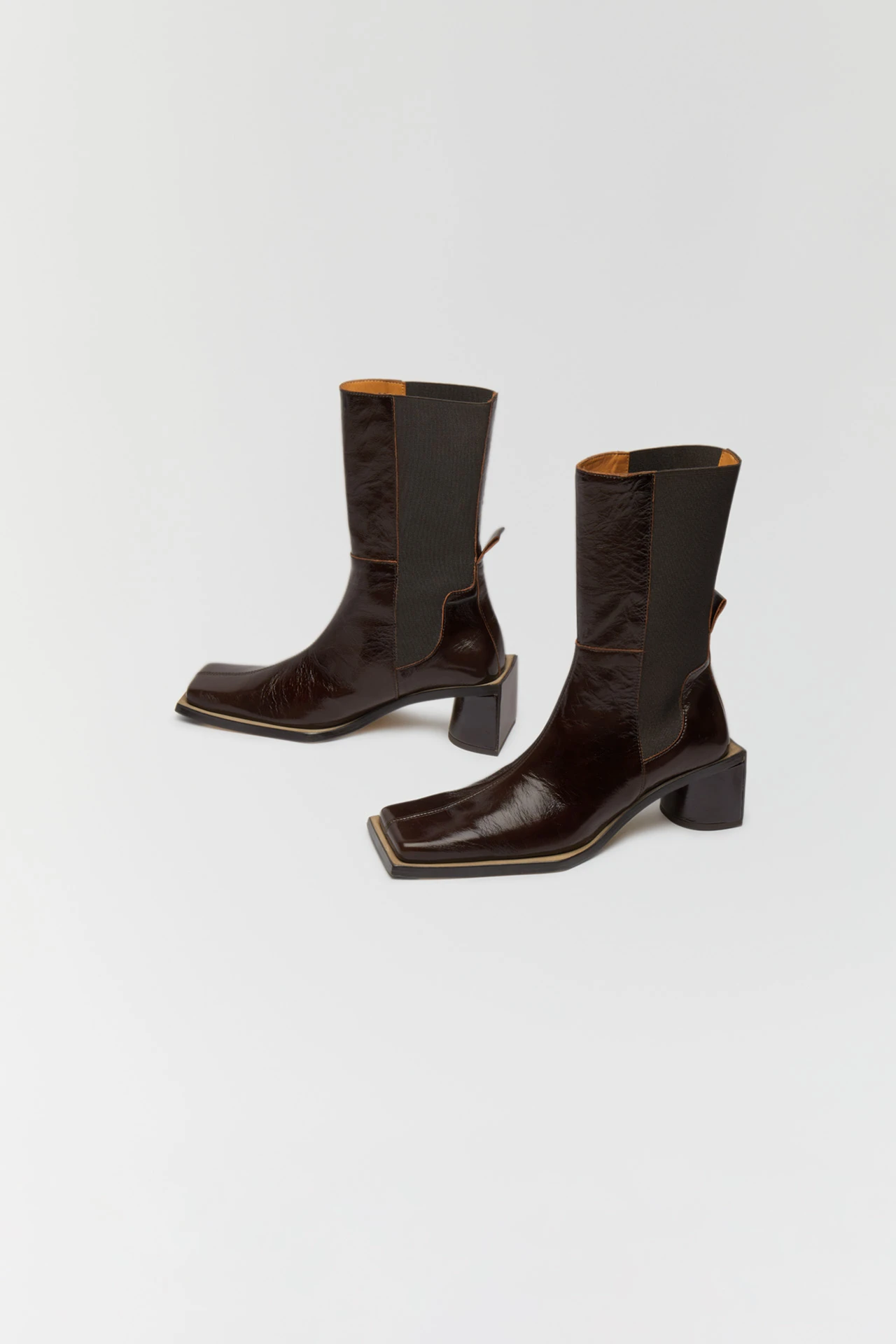 Formed of cracked brown leather, Minnie reaches up to the mid-calf – forming a perfect fit thanks to her wide elastic side panelling and a pull tab to the rear. Raw edges to her seams bring a tough look to her finish – as does her elongated square toe. Her waterfall heel, too, is slightly elongated, darting out beyond her upper for an angular finish to the rear in contrast to its rounded front.