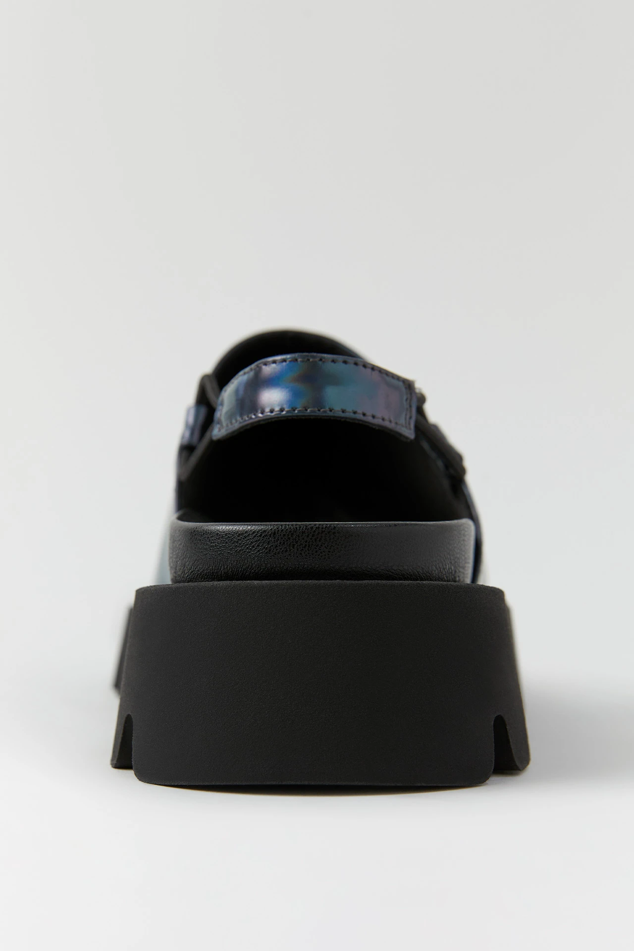 Like the infamous Jolene, Noreen is at risk of taking your man. She’s a platformed sandal with a midnight oil effect faux leather upper, complete with an elasticated back strap for both adjustability and wearability. She’s got a rubber flex cleated sole with a slight platform to raise you up a notch, and has an anatomical insole that massages the foot as you walk.