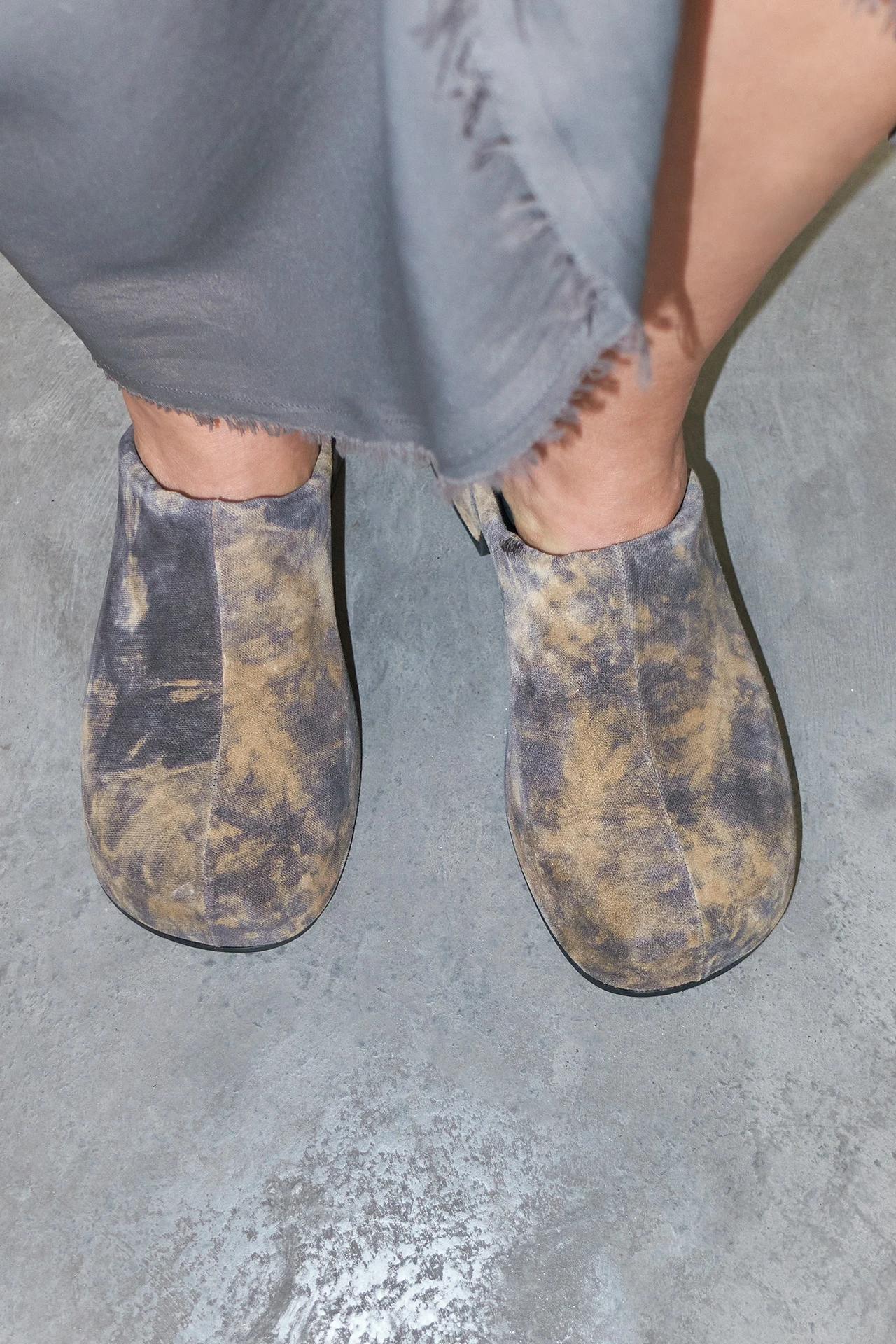 Pris isn’t just a clog. She’s the clog embracing every last detail of what it means to truly be a clog. Coated in acerbic brown and black nubuck, her interior is comprised of a single piece of rubber cast in Pris’ unique mould. Following shapely flowing lines, her upper projects outwards – almost oversized: this is a clog that knows how to take up space. Pris is complete with memory foam insoles and vegetable tan lamb leather lining for enhanced comfort, with a rubber-coated sole that reaches right up the heel for added grip and durability.