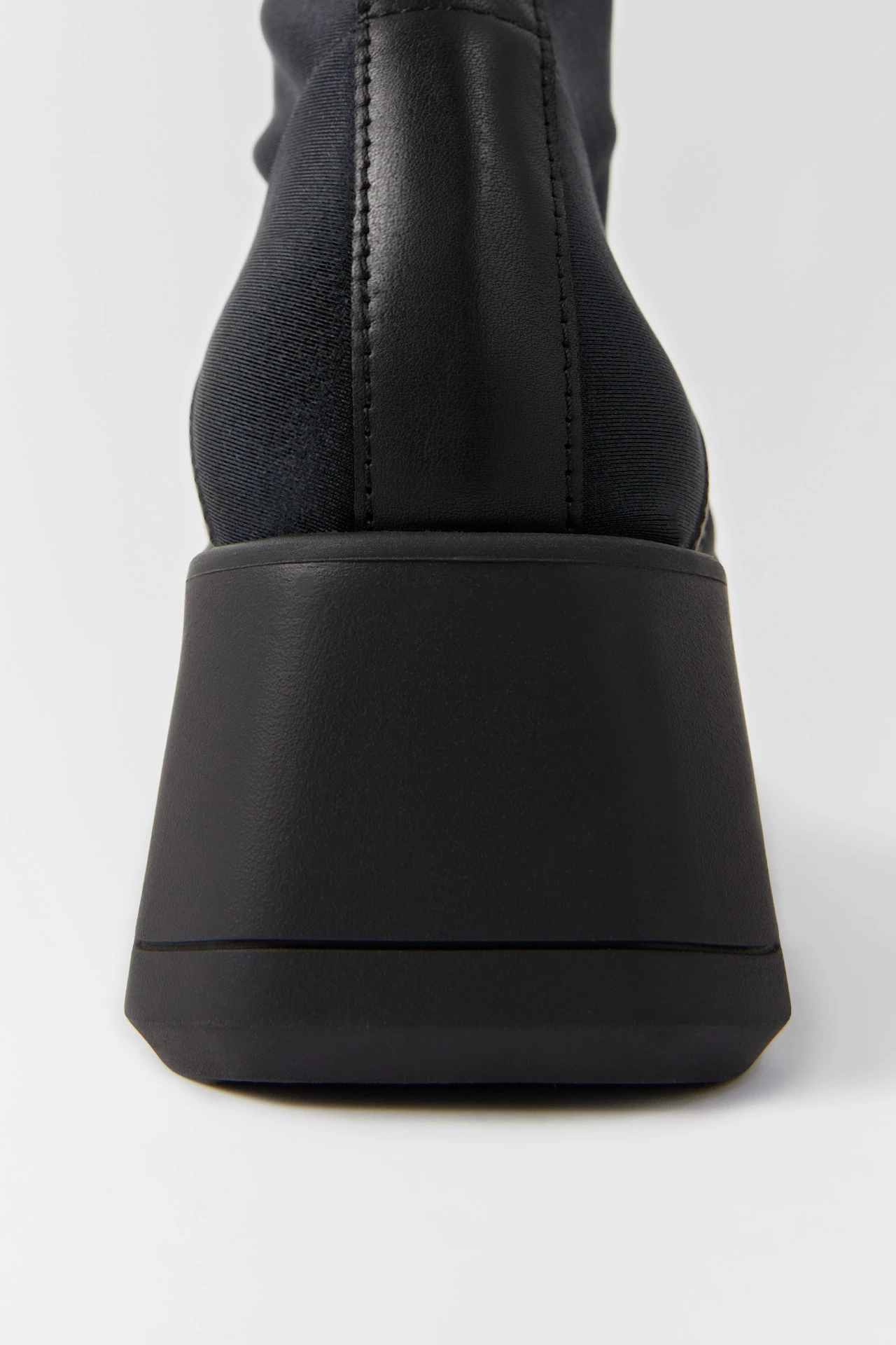 Shawna is a stretch lycra slip-on boot inspired by 1970s motor-racing boots that features two slim stripe panels of reflective grey textile (see them shine under flashlight!). Stride with speed in these sporty chunky soles that boast cubic chiselled sections and an E8 logo tread sole.