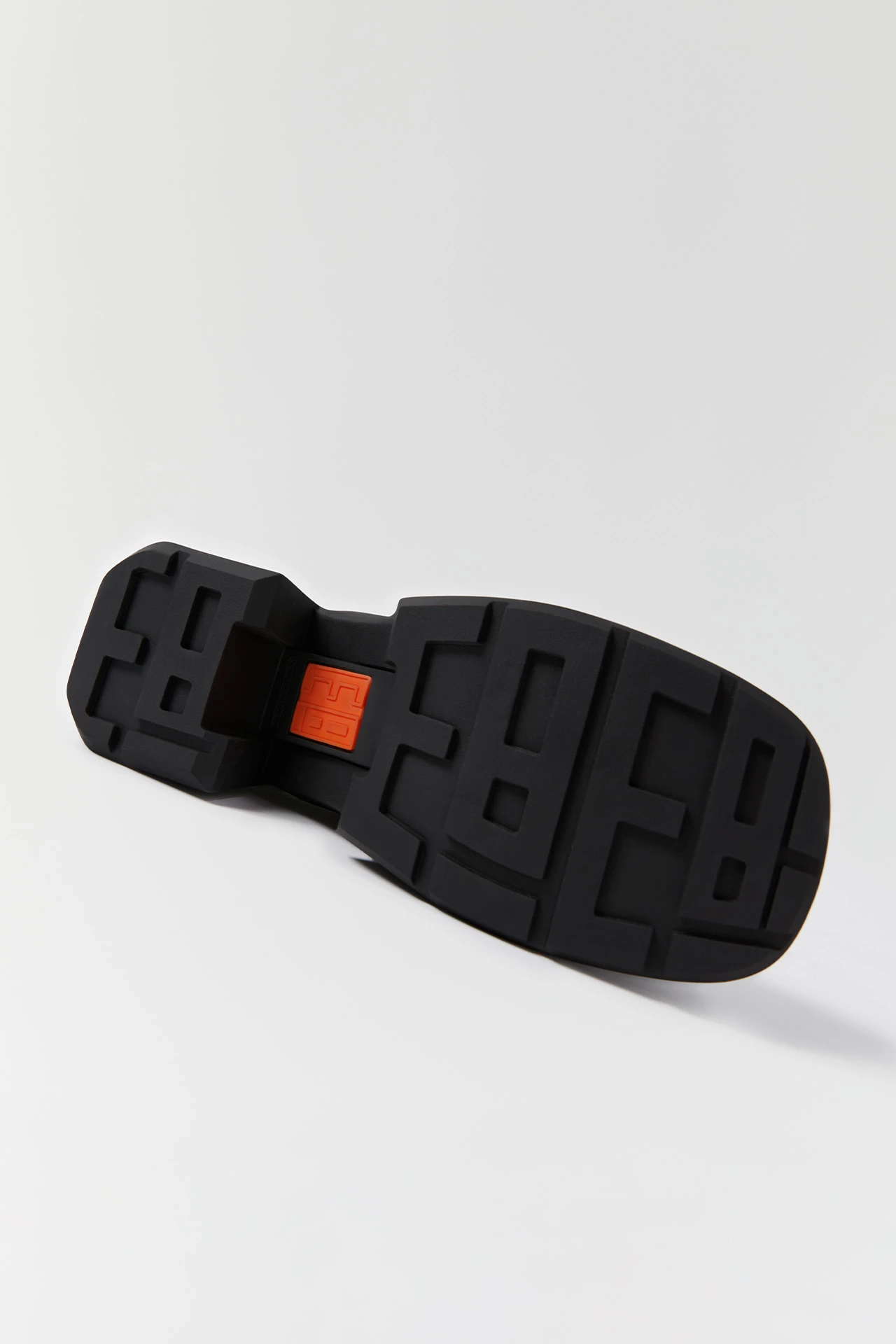 Shawna is a stretch lycra slip-on boot inspired by 1970s motor-racing boots that features two slim stripe panels of reflective grey textile (see them shine under flashlight!). Stride with speed in these sporty chunky soles that boast cubic chiselled sections and an E8 logo tread sole.