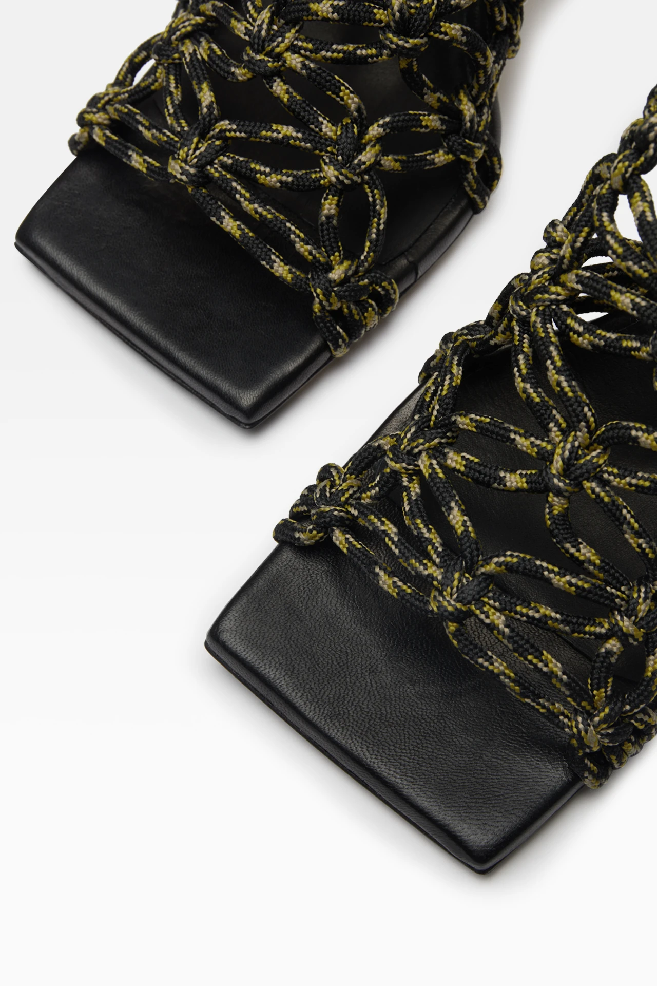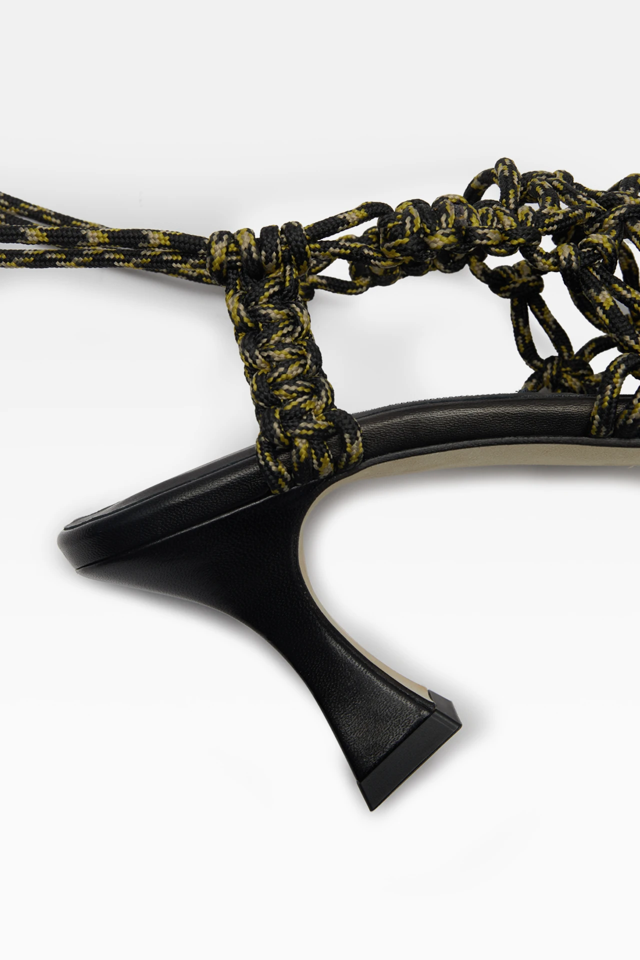 Some sandals fade, but Stephanie’s Icon status sustains. And quite right, too. Atop a lambs leather covered flared heel and square-toed slimline leather outsole, her upper is formed of macrame knotted shoelaces in contrasting black, green, and beige – tied typically to the rear, or however you see fit. As with all Icons, Stephanie is finished with memory foam insoles and vegetable tan cow leather lining for enhanced comfort, plus a rubber heel cap and rubber-invected toe on her vegetable tan cow leather sole for durability. Heel Height 7,5cm This style is true to size. We recommend selecting your standard European size. Designed in London | Handcrafted in Spain