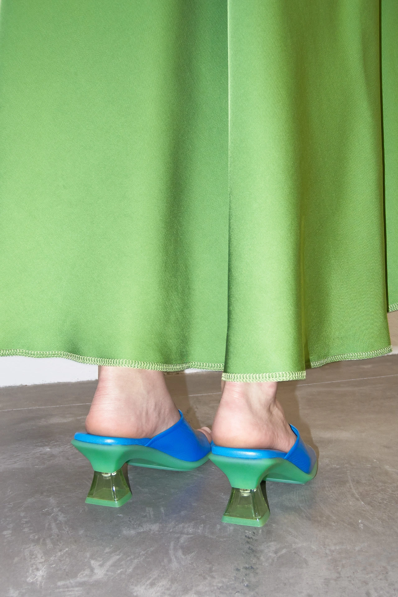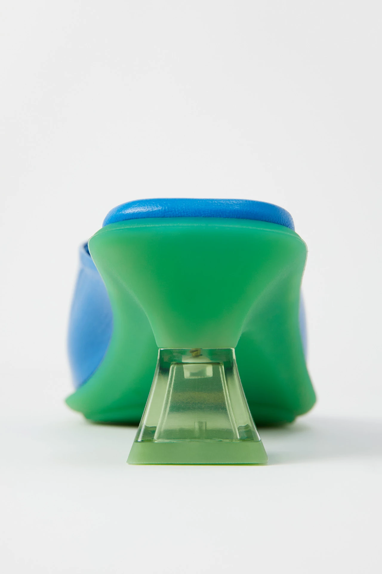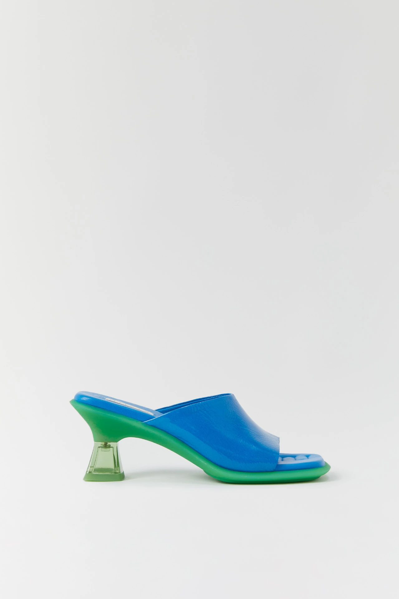 She’s Synthia and she’s queen of the summer. She’s got a leather upper with a swooping curve that hugs the front of the foot then meets the toes with a clean straight line. Like all Icons, Synthia’s got a calf leather memory foam sole, sitting comfortably atop her contrast rubber sole. But the real kicker’s her square pyramid perspex heel – just like a fishtank without the fish.