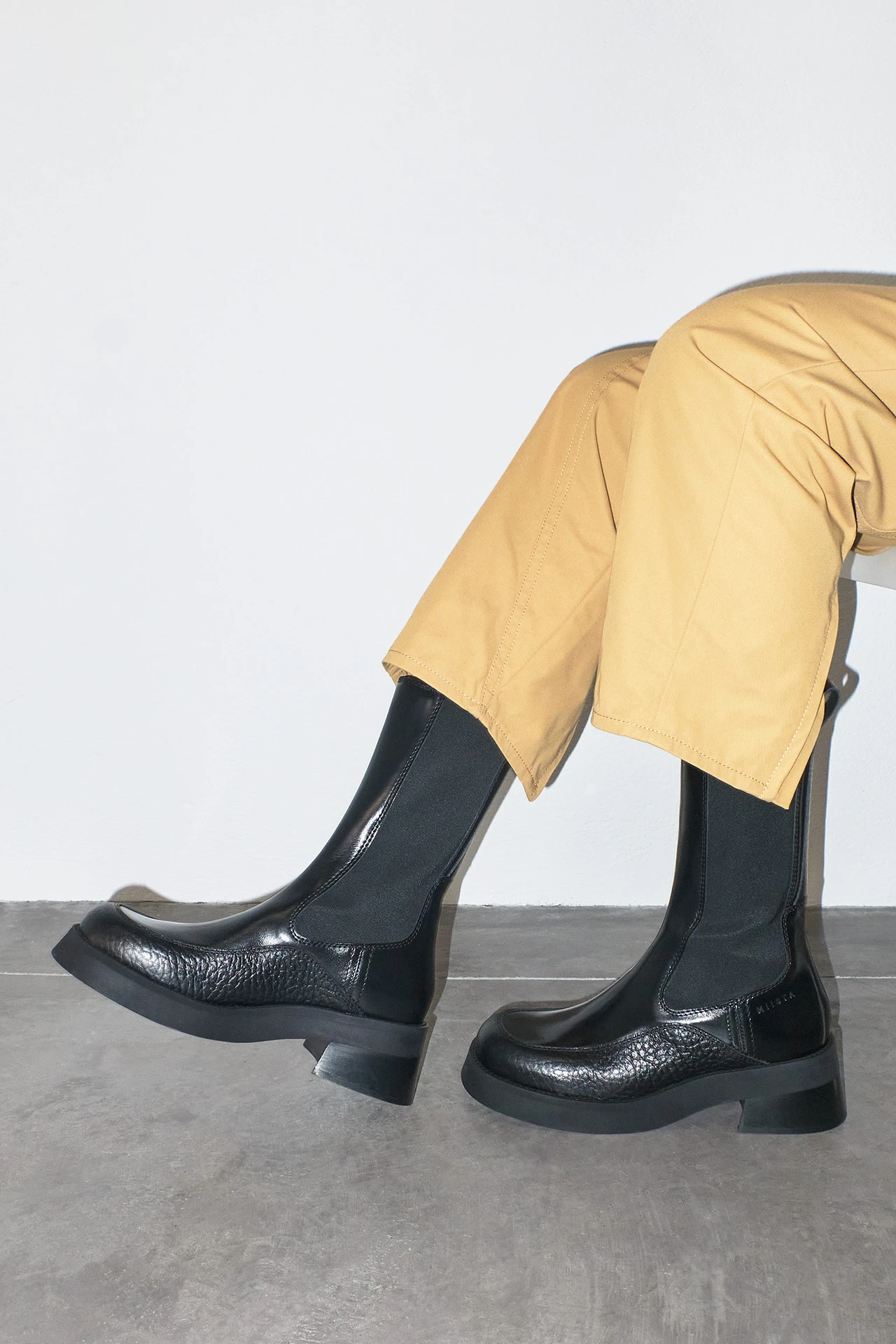 There’s something about Viviana. At first glance, her chelsea boot stance evokes familiarity, but as you get to know her, Viviana’s differing leather panels, angular heel, and embossed Miista logo challenge first impressions.